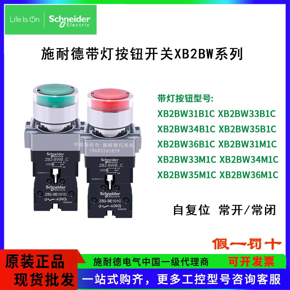 施耐德帶燈按鈕開關XB2BW33B1C平頭自復位按鈕指示燈代理商